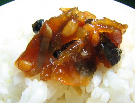 炊きたてのホカホカのご飯にのせて食べさせていただきました。